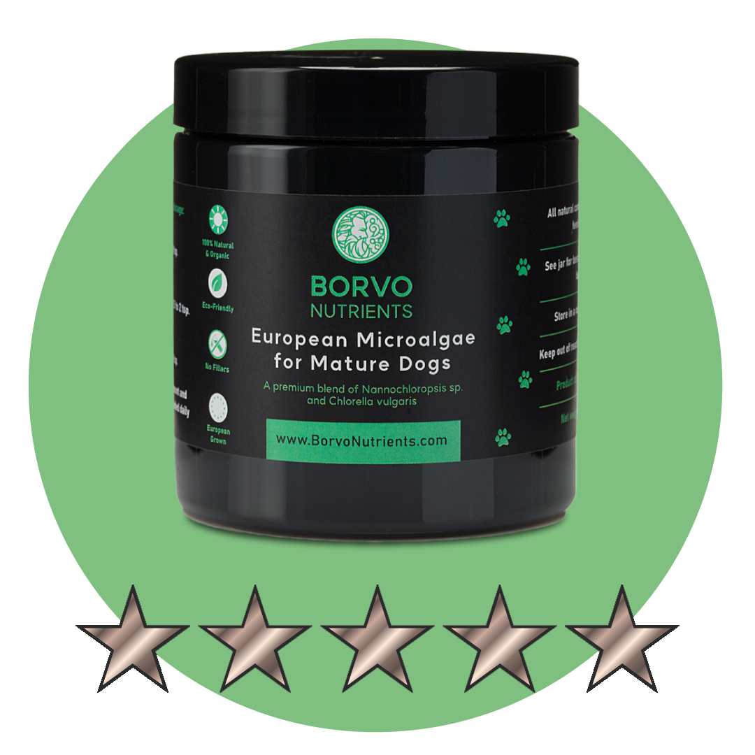 Microalgae Blend for Mature Dogs''Although they are still young, they suffer with joint pain and dry coat. This is really helping them''